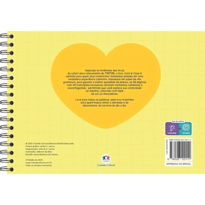 O livro CUTE & COZY é uma excelente escolha para quem busca transformar pequenos momentos em experiências de relaxamento e conforto. Inspirado no sucesso dos livros de colorir no TikTok, ele combina criatividade com bem-estar.Com 96 páginas, 48 desenhos exclusivos para colorir e impressos em papel de alta gramatura, o livro oferece uma experiência de pintura de alta qualidade, ideal tanto para lápis de cor quanto para marcadores. Suas ilustrações capturam a essência do cotidianos e momentos aconchegantes, incentivando a exploração artística de forma descomplicada.Livre para todas as idades, CUTE & COZY é mais que um livro de colorir: é uma ferramenta perfeita para aliviar o estresse, desacelerar e se desconectar da rotina atribulada. Uma verdadeira pausa criativa para o corpo e a mente!