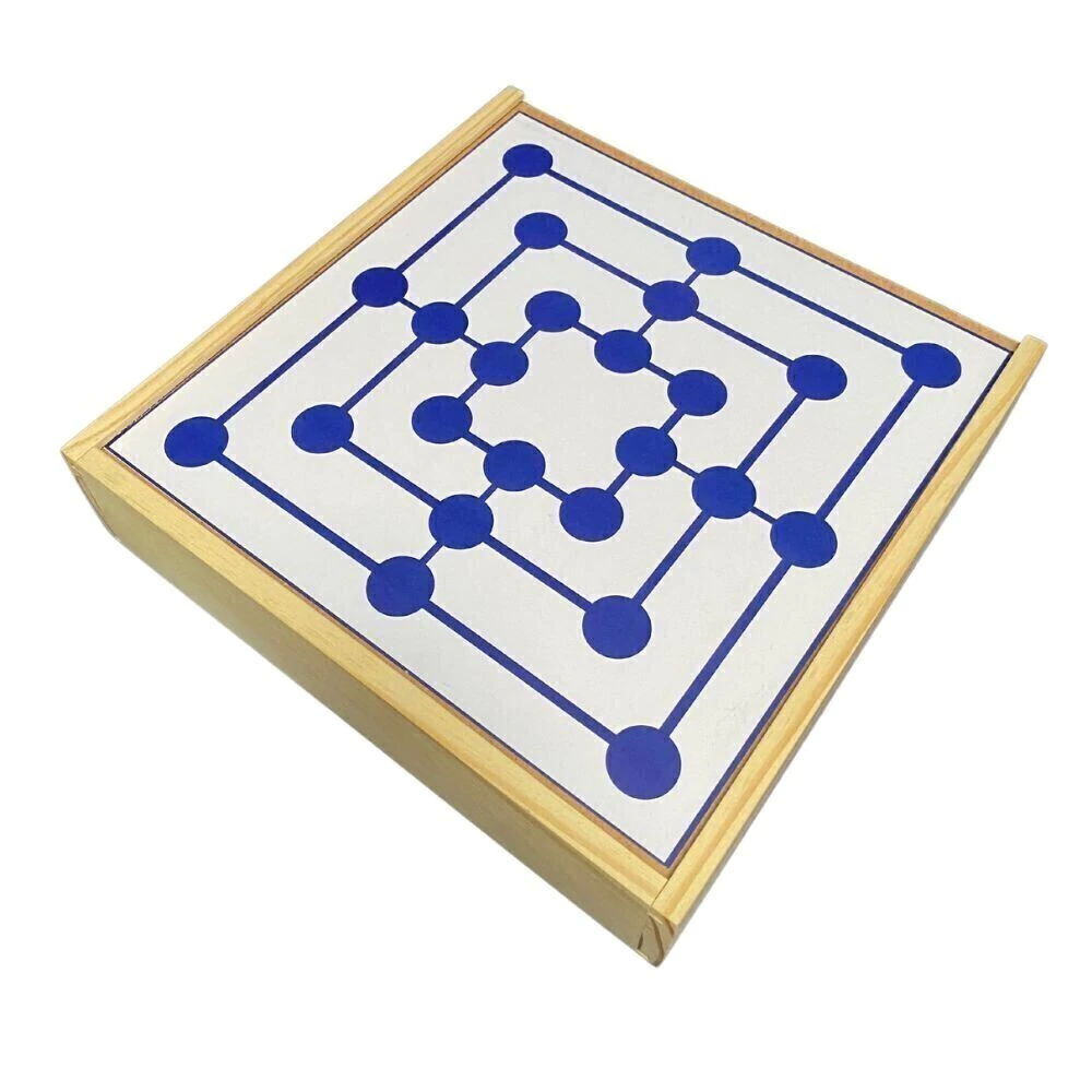 Jogo de Tabuleiro em Madeira 3 em 1- Dama, Trilha, Jogo da Velha