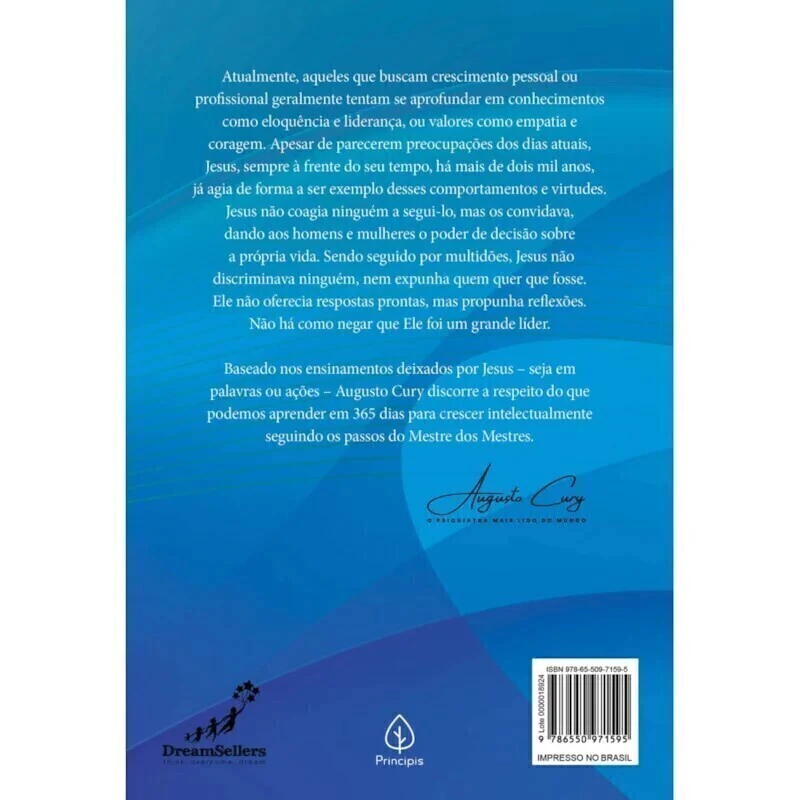 Atualmente, aqueles que buscam crescimento pessoal ou profissional geralmente tentam se aprofundar em conhecimentos como eloquência e liderança, ou valores como empatia e coragem. Apesar de parecerem preocupações dos dias atuais, Jesus, sempre à frente do seu tempo, há mais de dois mil anos, já agia de forma a ser exemplo desses comportamentos e virtudes. Jesus não coagia ninguém a segui-lo, mas os convidava, dando aos homens e mulheres o poder de decisão sobre a própria vida. Sendo seguido por multidões, Jesus não discriminava ninguém, nem expunha quem quer que fosse. Ele não oferecia respostas prontas, mas propunha reflexões. Não há como negar que Ele foi um grande líder. Baseado nos ensinamentos deixados por Jesus – seja em palavras ou ações – Augusto Cury discorre a respeito do que podemos aprender em 365 dias para crescer intelectualmente seguindo os passos do Mestre dos Mestres.