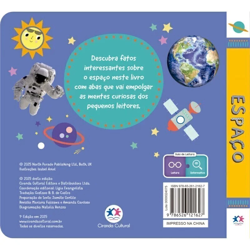 Descubra fatos interessantes sobre o espaço neste livro com abas que vai empolgar as mentes curiosas dos pequenos leitores.