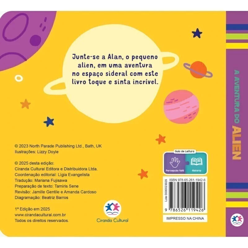Junte-se a Alan, o pequeno alien, em uma aventura no espaço sideral com este livro toque e sinta incrível.