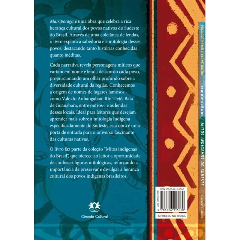 Mairiporãga é uma obra que celebra a rica herança cultural dos povos nativos do Sudeste do Brasil. Através de uma coletânea de lendas, o livro explora a sabedoria e a mitologia desses povos, destacando tanto histórias conhecidas quanto inéditas. Cada narrativa revela personagens míticos que variam em nome e lenda de acordo com cada povo, proporcionando um olhar profundo sobre a diversidade cultural da região. Conhecemos a origem de nomes de lugares famosos - como Vale do Anhangabaú, Rio Tietê, Guanabara, entre outros -, e as lendas desses locais. Ideal para leitores que desejam aprender mais sobre a mitologia indígena especificadamente do Sudeste, esta obra é uma porta de entrada para o universo fascinante das culturas nativas.