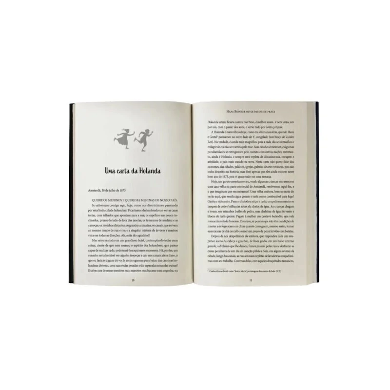 Um relato triunfante da bondade sobre este livro traz duas histórias em uma. A principal é sobre Hans e Gretel, dois irmãos que enfrentam muitas dificuldades, mas nem por isso deixam de sonhar e de buscar seus sonhos. A história paralela é sobre um garoto inglês, Ben Dobbs, que se junta a seus novos amigos em uma excursão de patinação em Amsterdã. Com mensagem compassiva e empática, o livro, publicado em 1865, tornou-se um verdadeiro clássico para leitores de todas as idades ao contar a história de uma família unida, apesar das dificuldades, e de desejos concedidos na hora certa.